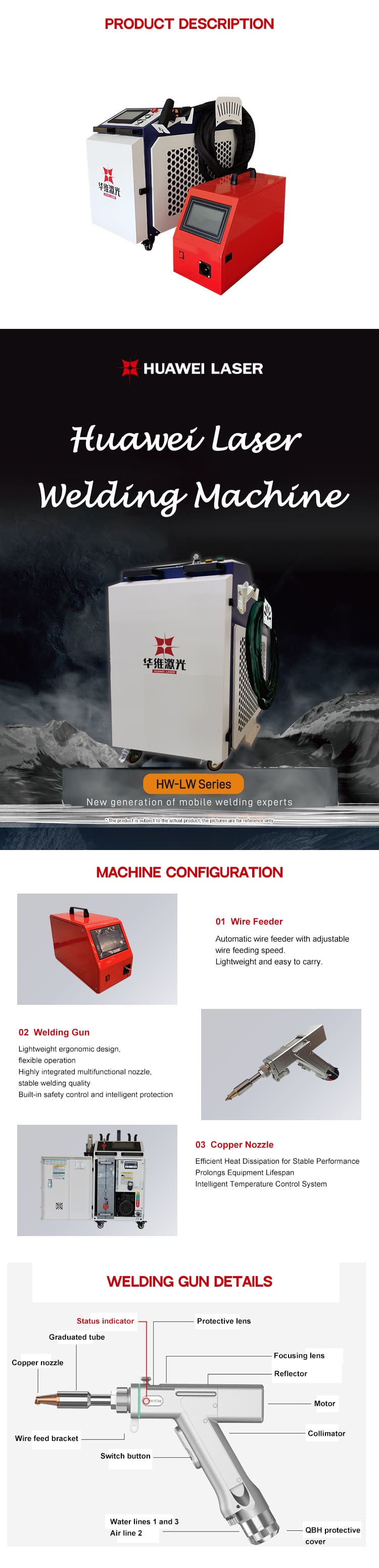 The हुआवेई लेजर मेटल 3 इन 1 पोर्टेबल लेजर वेल्डर के लिए 1200W 1500W 2000W 3000W लेजर वेल्डिंग मशीनएक बहुमुखी हैहैंडहेल्ड लेजर वेल्डिंग मशीनजो एक कॉम्पैक्ट डिज़ाइन में वेल्डिंग, सफाई और कटिंग को जोड़ती है। लचीलेपन और उच्च दक्षता के लिए इंजीनियर किया गया, यह स्टेनलेस स्टील, कार्बन स्टील और एल्यूमीनियम जैसी विभिन्न धातुओं में स्थिर लेजर आउटपुट और चिकनी वेल्ड सीम प्रदान करता है। विभिन्न औद्योगिक आवश्यकताओं को पूरा करने के लिए कई बिजली विकल्पों के साथ, यह पोर्टेबल लेजर वेल्डरहुआवेई लेजरशुरुआती और पेशेवरों दोनों के लिए आसान संचालन, कम रखरखाव और बेहतर वेल्डिंग प्रदर्शन सुनिश्चित करता है।
