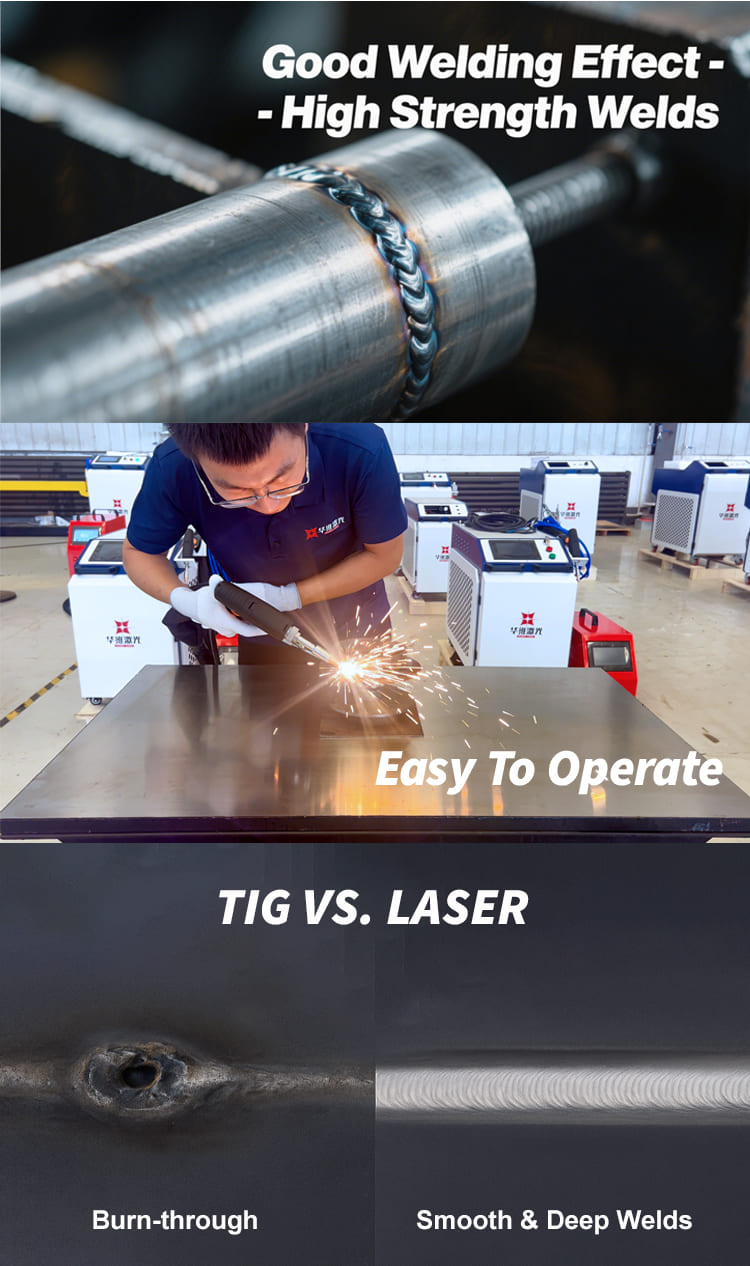 ★अच्छा वेल्डिंग प्रभाव: सुंदर और चिकनी वेल्ड, कोई या कुछ छिद्र नहीं, छोटा गर्मी प्रभावित क्षेत्र। वेल्ड की ताकत आधार सामग्री तक पहुंच सकती है या उससे भी अधिक हो सकती है।